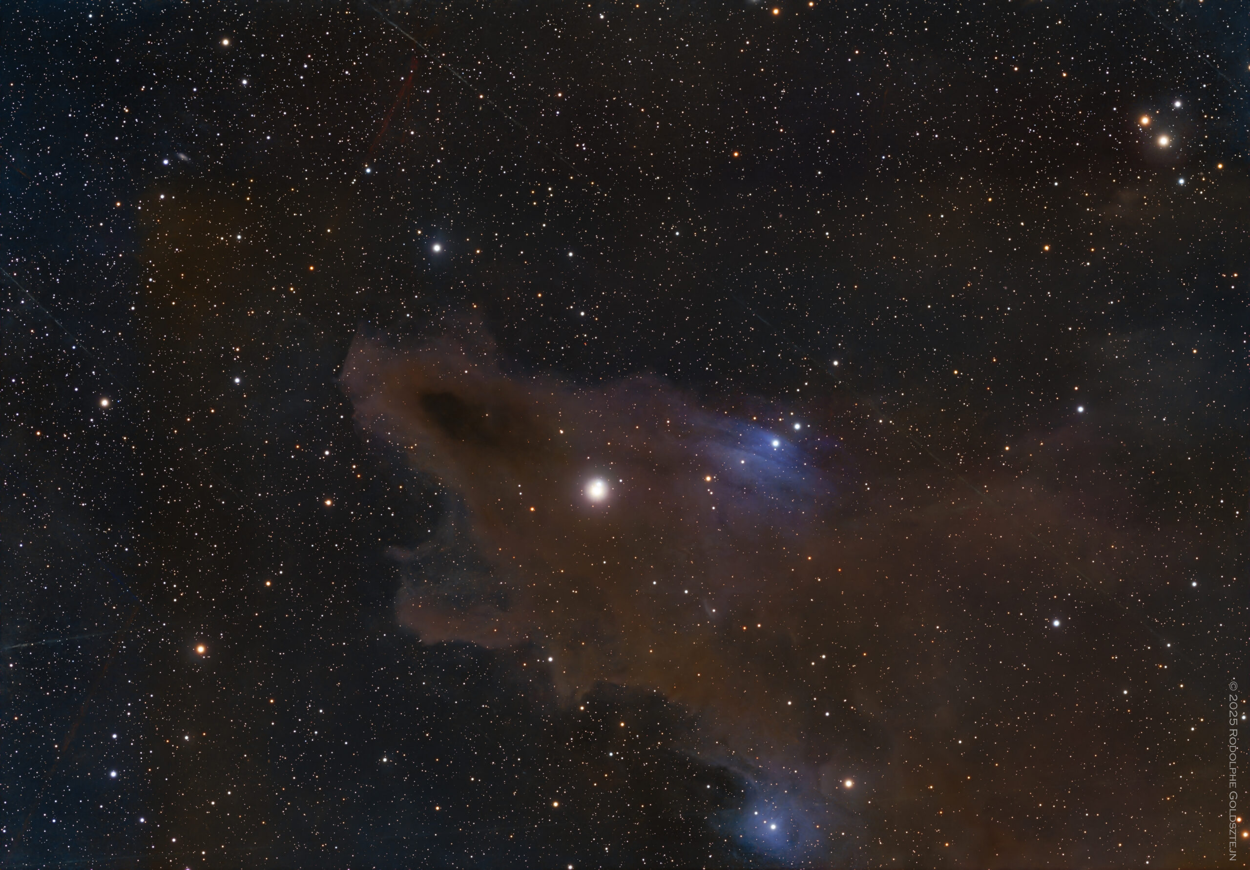 Il ne fait pas bon patauger dans les eaux ténébreuses de la constellation Céphée, on y rencontre des créatures effrayantes, telles ce requin, LDN 1235, dénommée fort justement la nébuleuse du Requin. Elle se situe dans la constellation Céphée, à environ 1’100 années-lumière de nous.  Céphée est une région très riche en nébulosités de toutes sortes, on peut facilement y “tirer” au hasard et on est quasi-certain d’en rapporter quelque chose d’intéressant.
