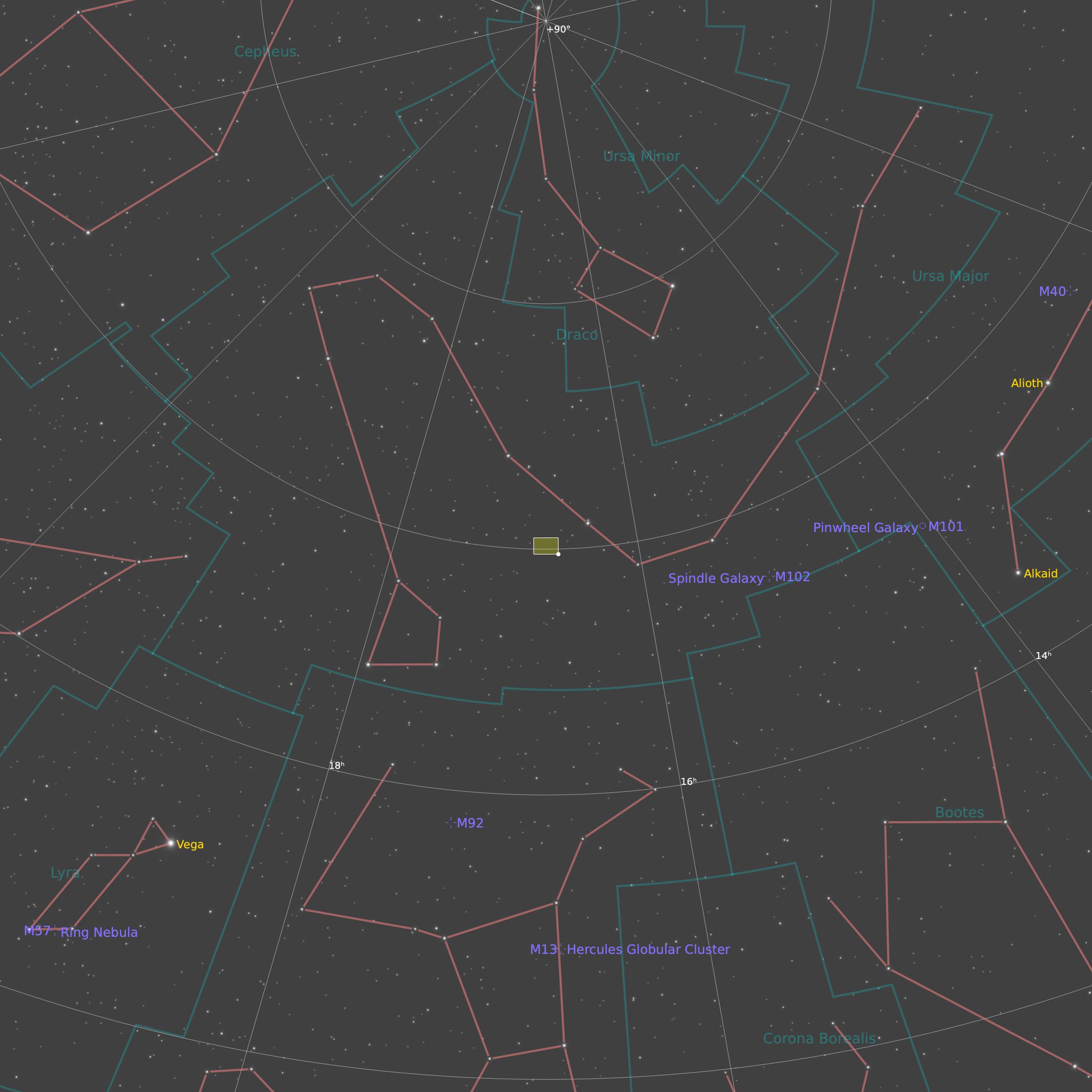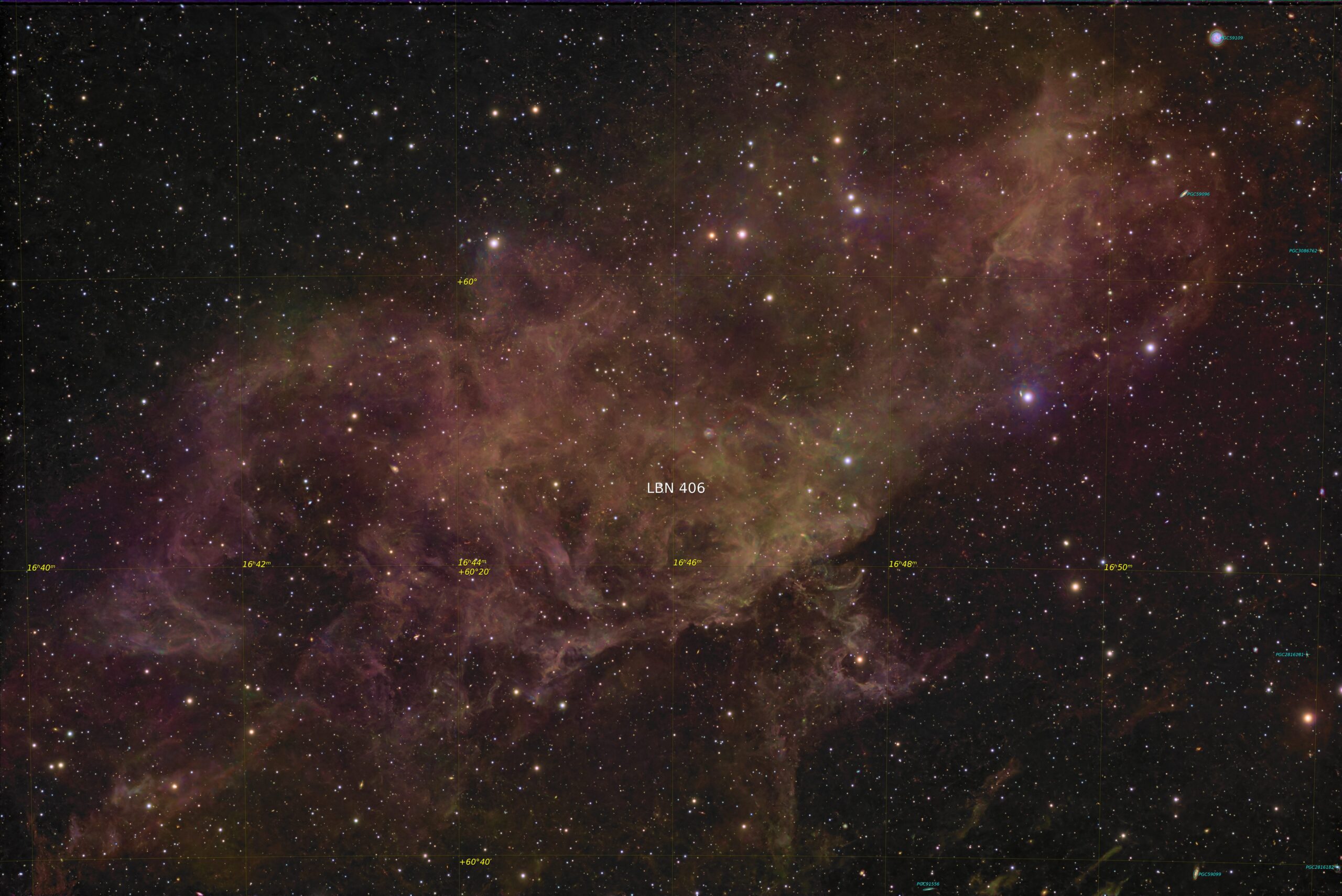 LBN 406, aussi connue sous le sobriquet “Le Crâne Rieur” située dans la constellation du Dragon, très peu documentée.