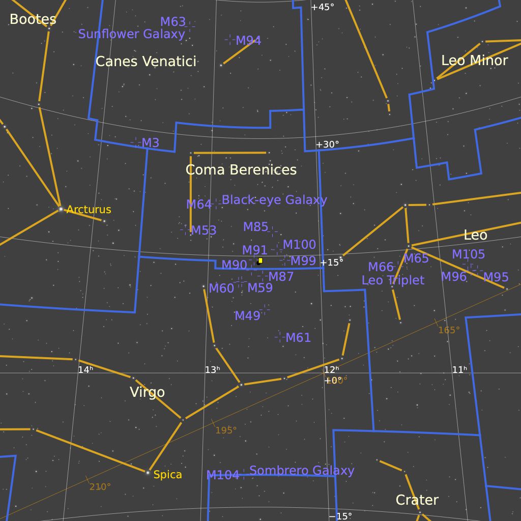 M 88, qui n’a pas de petit nom, dans la constellation de la Chevelure de Bérénice, est située à environ 60 millions d’années-lumière de distance.